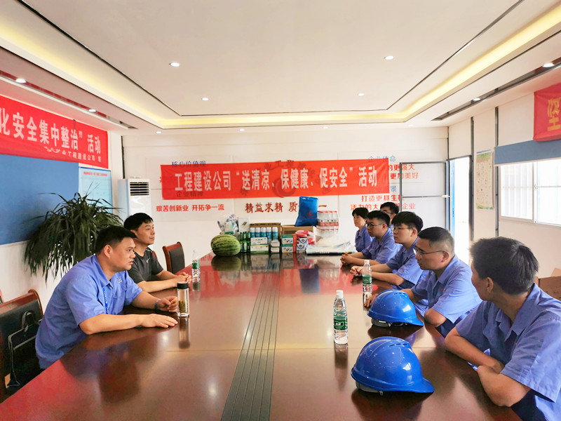 虽已立秋,但“秋老虎”还在发作。特别是近期天气以高温为主,又正值建筑施工高峰期。为帮助高温下依然奋斗在生产第一线的职工们更好地渡过高温天气,保证职工的施工安全。连日来,工程建设公司开展“送清凉,保健康,促安全”主题活动,为现场工人送去了由西瓜、绿豆、藿香正气水、风油精等防暑降温物品组成的“清凉礼包”,为一线员工送去高温下的关心与关怀。