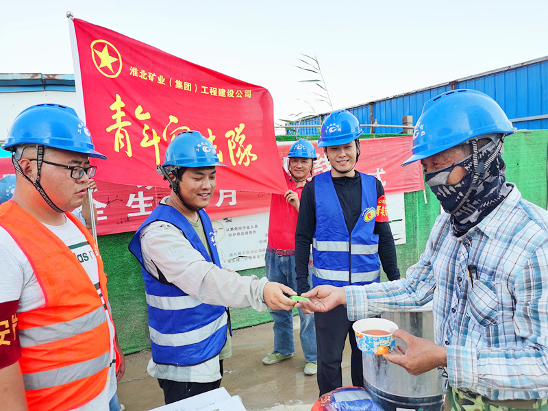 连日来,骄阳似火,酷暑难耐。为了保证职工身体健康,不发生中暑现象,工程建设公司团委组织青年突击队员、青安岗员成立了“送清凉”小分队前往施工一线,为高温下辛勤工作的职工送去清凉油、藿香正气水、绿豆汤、矿泉水等防暑降温物品,叮嘱他们高温季节一定要注意饮食休息,班中做好自我防护,高高兴兴上班来,平平安安回家去。图为“送清凉”小分队在高温时段,不间断向现场送清凉,确保一线职工随时饮用到冰镇的饮品。
