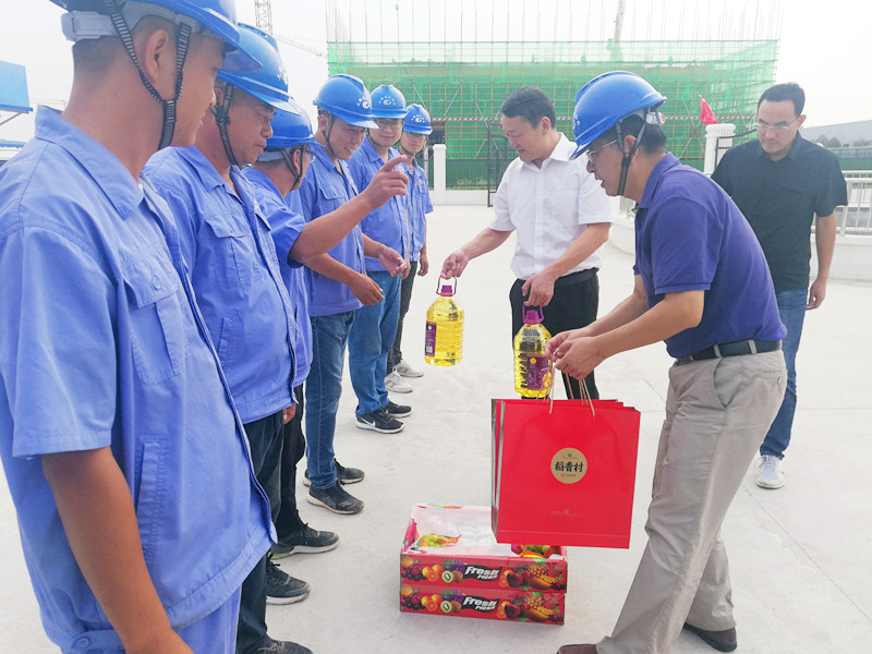 正值国庆、中秋双节之际,处处洋溢着喜庆的气息。10月1日上午,现代服务公司领导梁遵义一行来到工程建设公司相山经开区项目部看望慰问节日期间坚守岗位的一线干部职工,致以节日的问候和祝福,同时带去了节日的慰问品。工程建设公司党委书记、董事长赵立新陪同慰问。