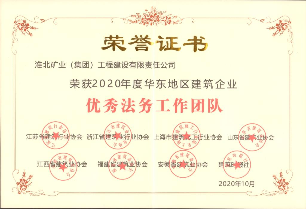 为在行业中具体落实依法治国战略,推动企业法务工作更上一个台阶,提高企业合规经营和依法维权水平,提升企业法务工作在经营发展中的作用和地位,江苏省建筑行业协会、浙江省建筑业行业协会、上海市建筑施工行业协会、山东省建筑业协会、江西省建筑业协会、福建省建筑业协会、安徽省建筑业协会、建筑时报社组织开展了2020年度华东地区建筑业企业法务工作优秀团队评比,工程建设公司荣获优秀法务工作团队称号。据悉,安徽省仅两家企业获此殊荣。