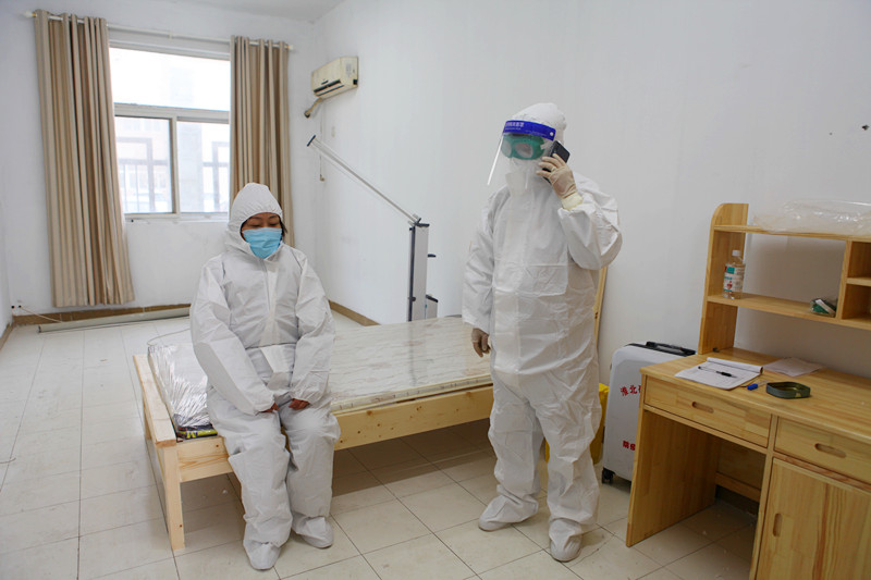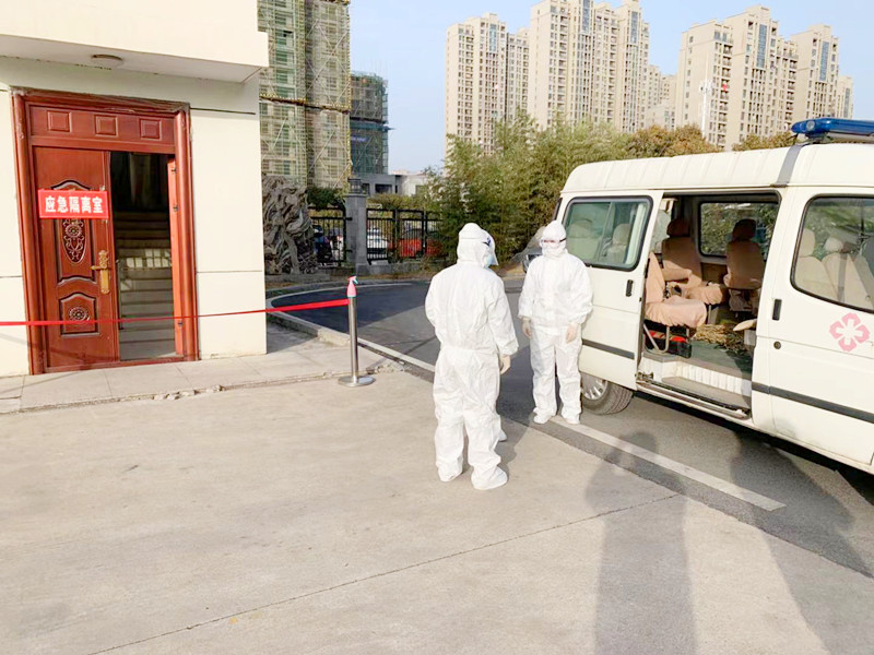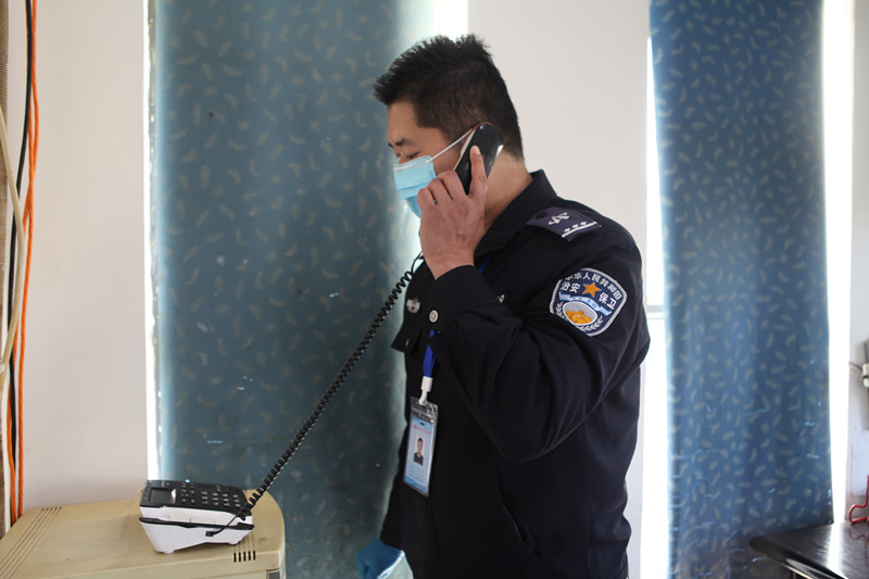“收到,请做好个人防护,原地等待,我现在联系隔离室工作人员到门岗进行紧急处理。”