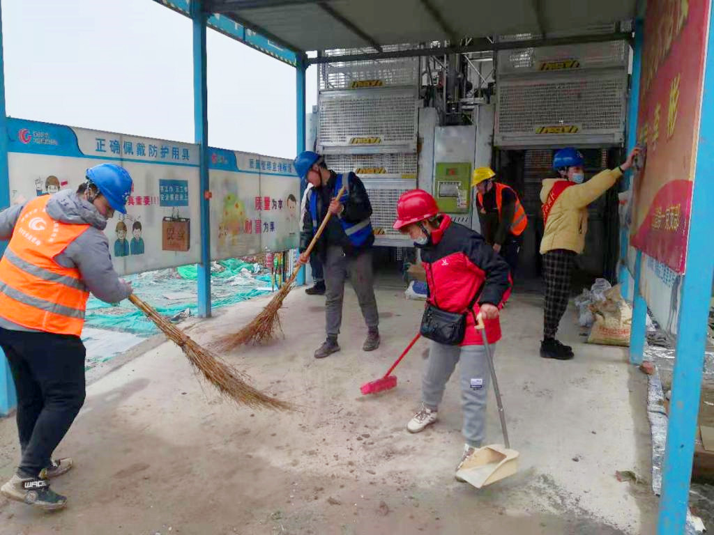 图三:施工现场青年志愿者开展“树新风 讲文明 ”文明施工志愿清扫活动