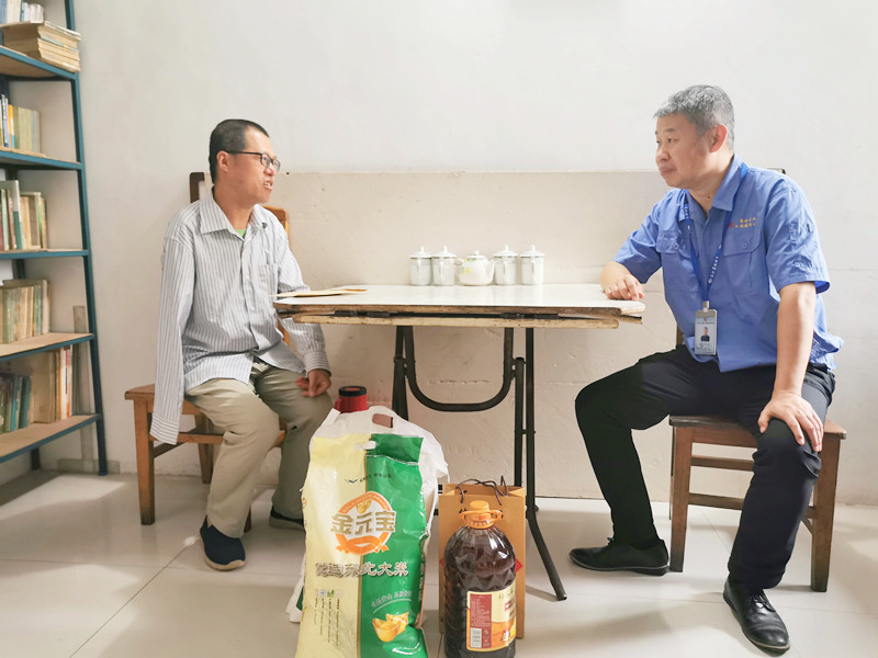 图为该公司党委副书记、总经理高旭节前来到困难职工家中进行走访慰问