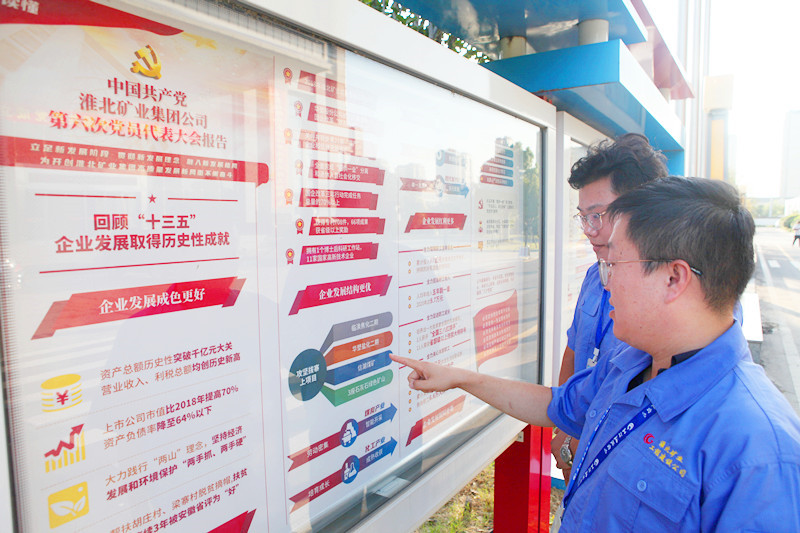 蓝图已经绘就,奋进正当其时。集团公司第六次党员代表大会闭幕以来,工程建设公司干部职工结合实际把思想和行动统一起来,充分利用线上线下学习相结合的方式,迅速掀起学习第六次党员代表大会精神热潮,确保将会议提出的各项目部任务落到实处。图为该公司两名职工正在观看集团公司第六次党员代表大会报告展板。