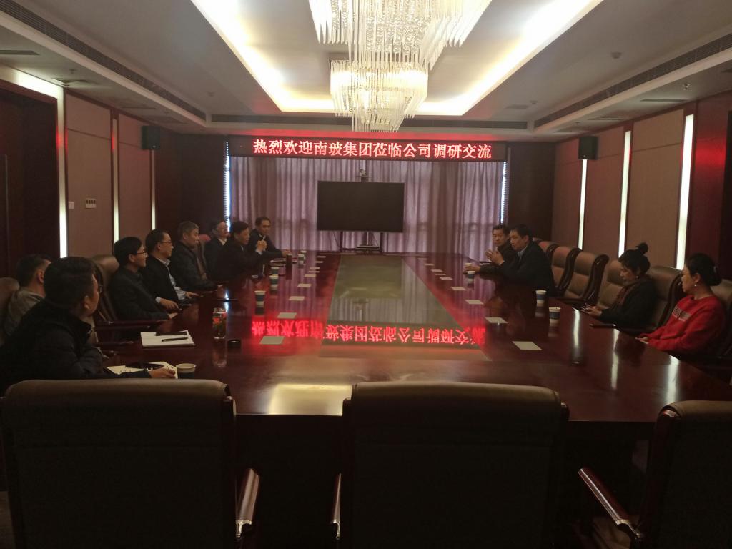 10月24日,南玻集团到公司走访交流,公司领导徐军、高旭、邢志勇、王洪明、关戈热情接待了走访人员。