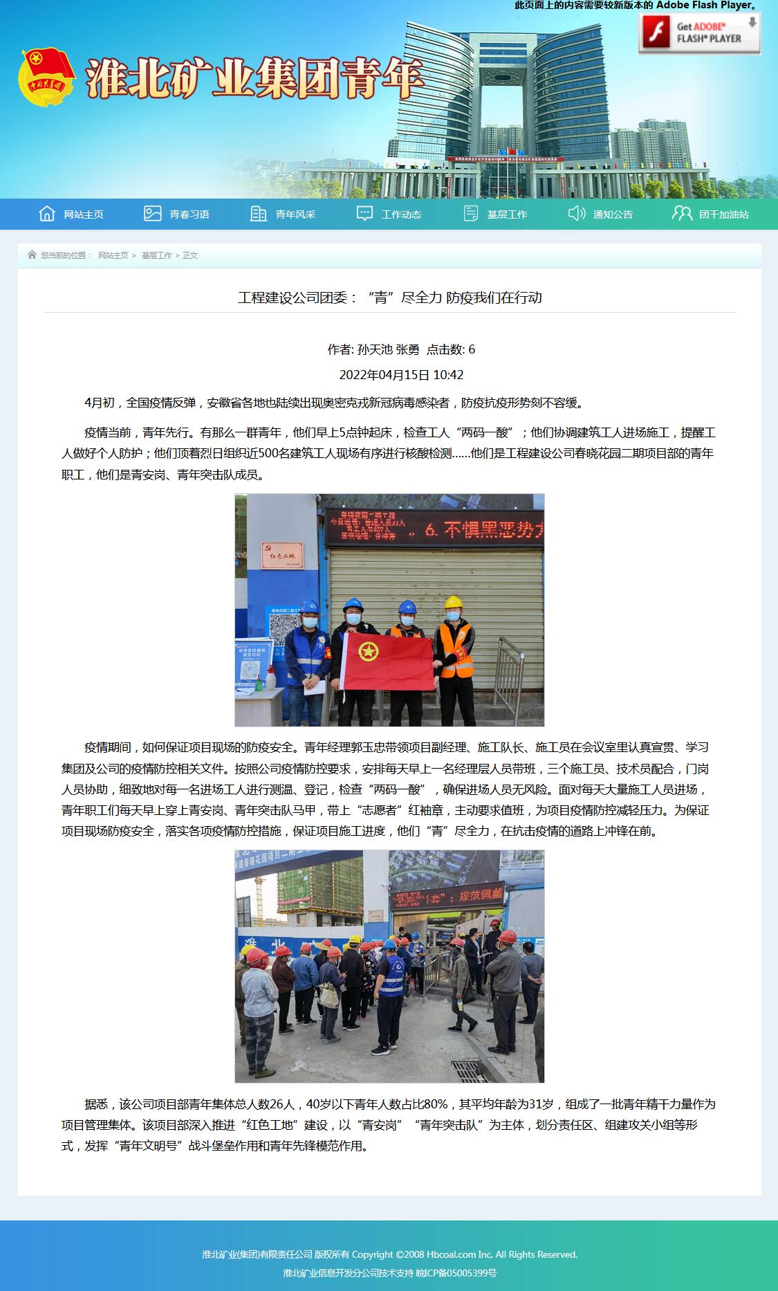 疫情期间,如何保证项目现场的防疫安全。青年经理郭玉忠带领项目副经理、施工队长、施工员在会议室里认真宣贯、学习集团及公司的疫情防控相关文件。按照公司疫情防控要求,安排每天早上一名经理层人员带班,三个施工员、技术员配合,门岗人员协助,细致地对每一名进场工人进行测温、登记,检查“两码一酸”,确保进场人员无风险。面对每天大量施工人员进场,青年职工们每天早上穿上青安岗、青年突击队马甲,带上“志愿者”红袖章,主动要求值班,为项目疫情防控减轻压力。为保证项目现场防疫安全,落实各项疫情防控措施,保证项目施工进度,他们“青”尽全力,在抗击疫情的道路上冲锋在前。
