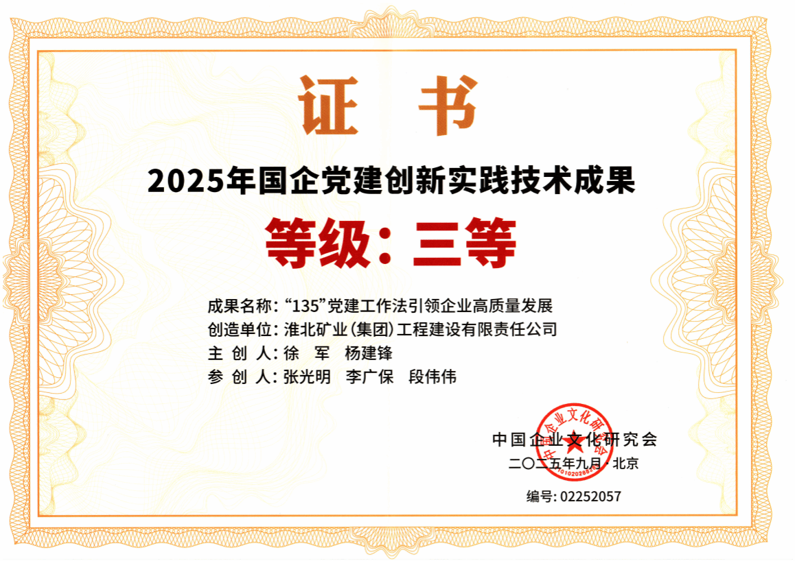 9月25日“2025年国企党建创新实践交流会”在北京举行。工程建设公司“135”党建工作法荣获“国企党建创新实践技术成果三等奖”。