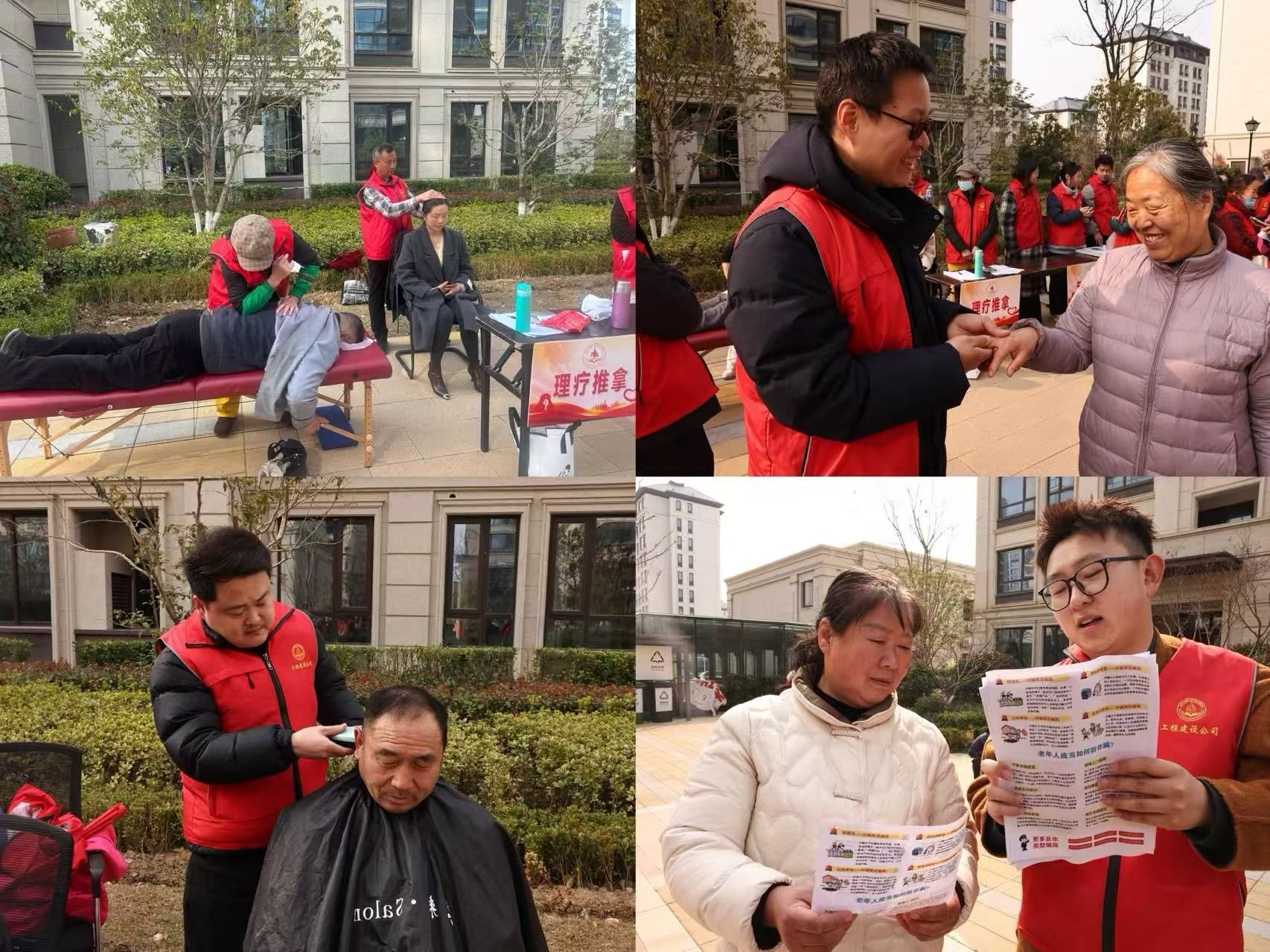 活动现场秩序井然、氛围热烈,各服务点位分工明确、高效运转。志愿者精准对接需求,设置了理疗推拿、中医手疗、义务理发、反诈宣传等多个便民服务项目,居民有序排队,现场气氛热烈。