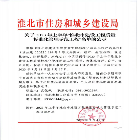 此次荣誉的获得,是对工程建设公司承建工程质量标准化工作的肯定,树立了良好的企业品牌形象,也为后续创优质工程奠定了坚实的基础。下一步,工程建设公司将持续做好质量标准化管理,加强过程管控,为群众打造满意的高品质工程。(撰稿:刘备;审核:郭灿;责编:孙天池)
